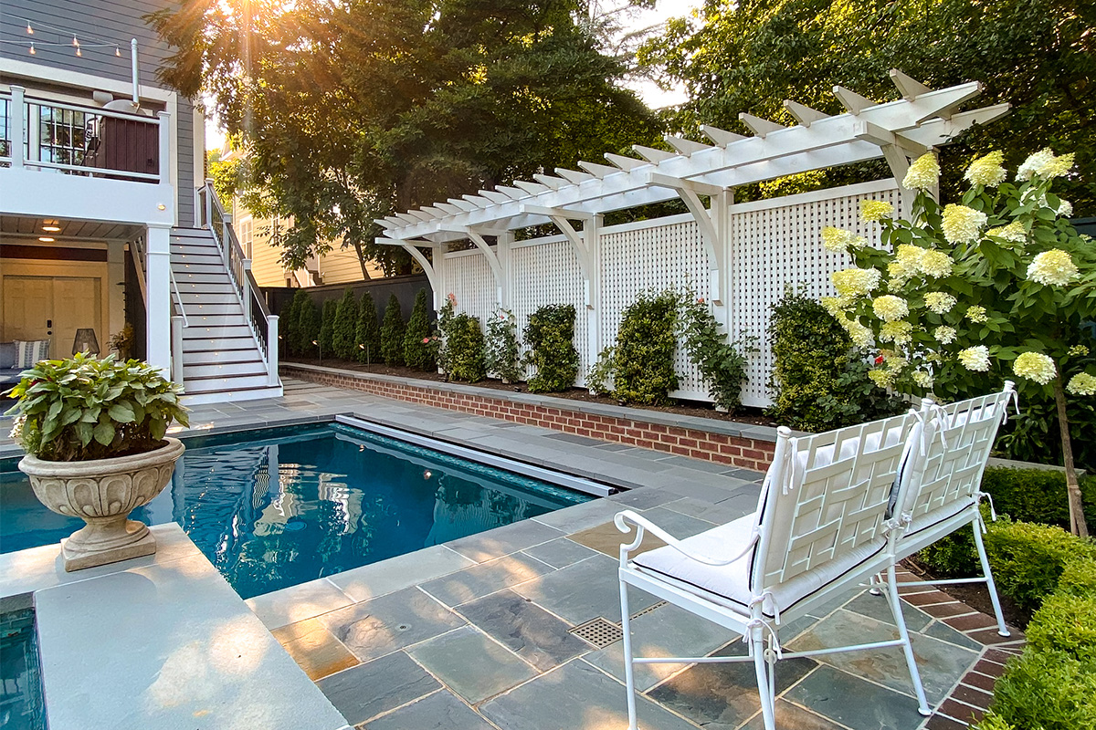 Tucked into the lush, tree-lined avenues of Chevy Chase, this elegant backyard transformation is a masterclass in outdoor luxury and functionality. The homeowners, passionate entertainers and lovers of refined design, sought to create a personal resort – something as welcoming for a quiet morning coffee as it is for evening soirees with friends.